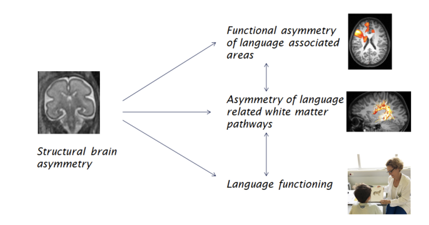 Aim: The present project aims to shed light on the relationship between prenatal anatomical asymmetry of the brain and later language localization, formation of language-related fiber bundles, and language abilities.